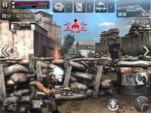 汽车在右侧转向往回走的时候狙一枪给开车的人就可以了,其他的时候可以不管。有时候汽车还没有转向的时候靠左侧墙角敌人都打完了,可以跑右边打楼上的火箭筒和手雷,但时间要掌握,不注意的话回左侧墙角的时候车已经开过或者车刚要过却要换弹夹。