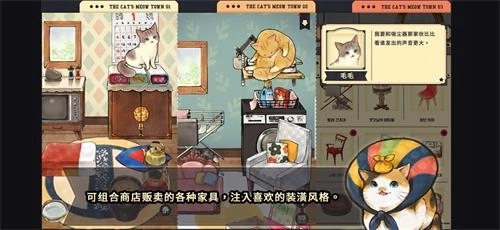 玩家在照顾猫咪之外,还能安排它们外出打工赚取金币,用这些金币购置新的家具与装饰,从而打造专属于自己的猫咪乐园。