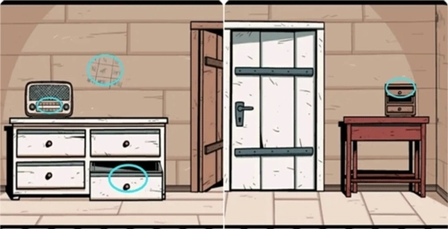 4、在白色门右边的抽屉柜里拿到两节「电池」,先把电池装进对讲机,然后将频道调到4听对讲机里播放的音乐,再点击收音机调整频道至你所听到的音乐频道上(这里要记住频道数字,不同音乐对应不同的频道)。注:组合物品:选择道具-Grab-选择要组合的道具,另外收音机右下方的抽屉里还有一个密码符号。