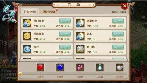 到了这个阶段,少侠在江湖中想必已站稳脚跟,收获了不少修道成果。此时世界的各类探索内容也都解锁完毕,少侠可以尽情投入到各种活动中去。若论经验获取的主要来源,依旧是之前的修行、除暴、师门任务。除此之外,还新增了一些能让经验快速增长的活动,比如白帮忙、通天塔和副本,这些活动的奖励足以让你实现快速升级。