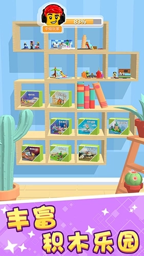 图片能让玩家感受到强烈的现实感,其中包含各式各样的小正方形,玩家可以通过匹配这些小方块来完成自己的积木作品。