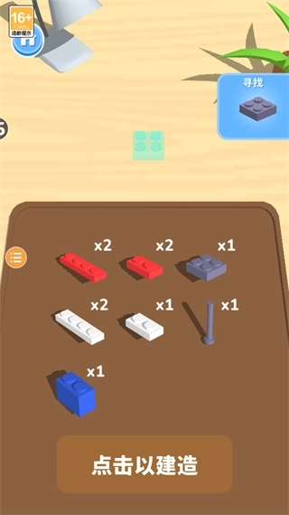 4、根据右上角的提示,点击对应的积木开始搭建;