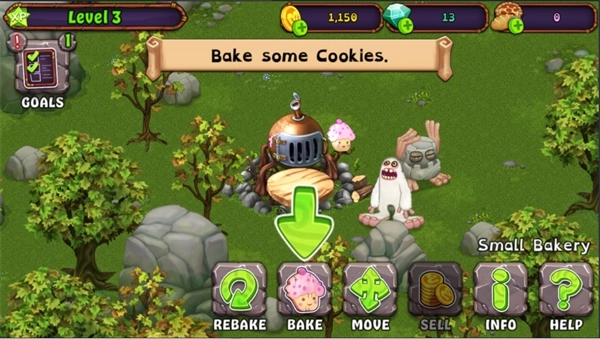5、等烤好出炉后,就可以给这些小怪兽喂食了,这样能让它们的等级快速提升,而且每次升级时它们都会唱起歌来。