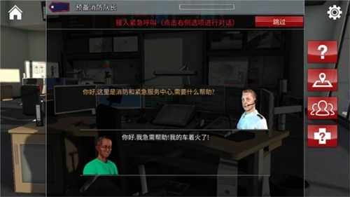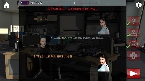 2、进入游戏后,你会抵达指挥中心并接到报警电话,通过点击右侧的对话选项,能够知晓现场的具体状况,进而合理调配出警的人员与车辆。