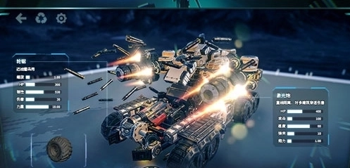 普通版战车,发射火箭需要小心,最好不要移动发射,容易炸到自己,防护性能一般般,高火力,配有自爆无人小车。无人小车不会被ai攻击,能自爆能攻击,只是移速有些慢。