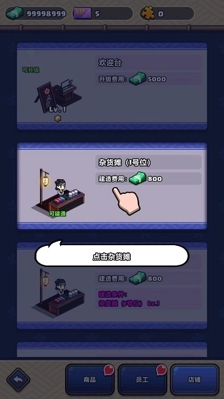 同样的方式,点击管理,选择杂货铺,点击建造即可!