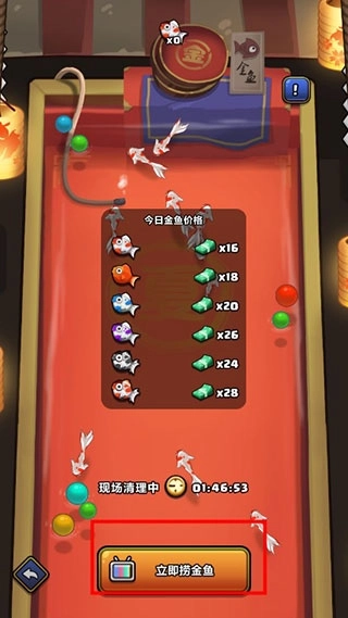 2、进入捞金鱼模式,点击立即捞金鱼。
