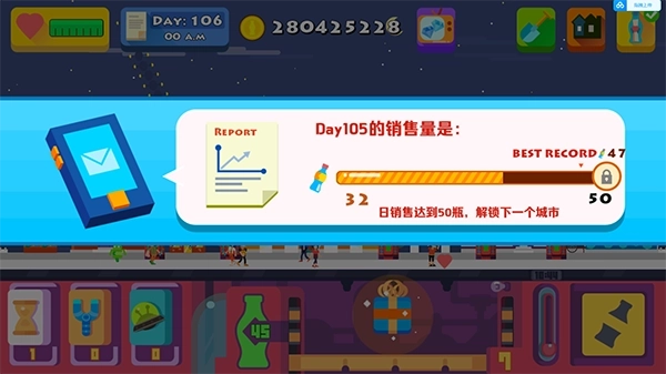 4、日销售量达到一定的目标就可以解锁下一个城市了