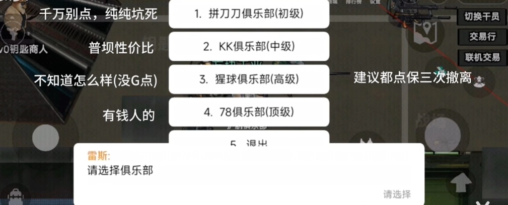 俱乐部选择如下图所示