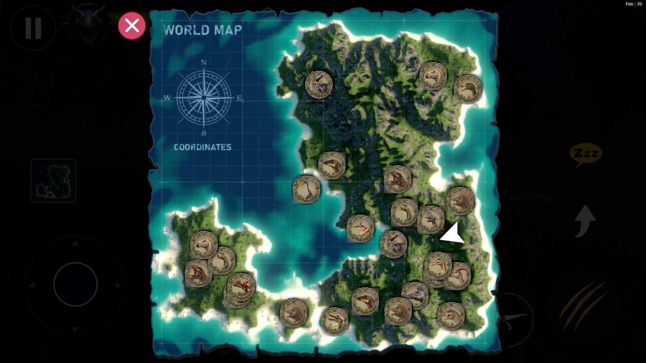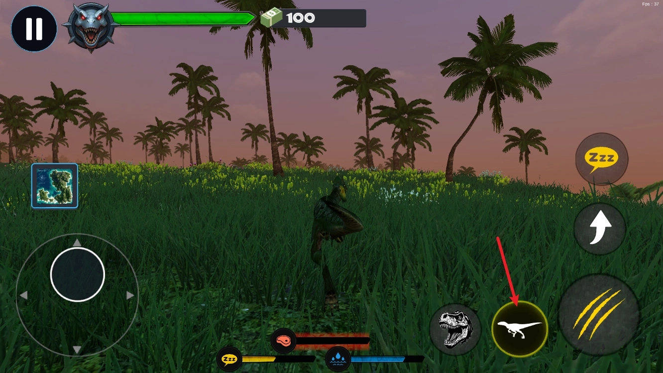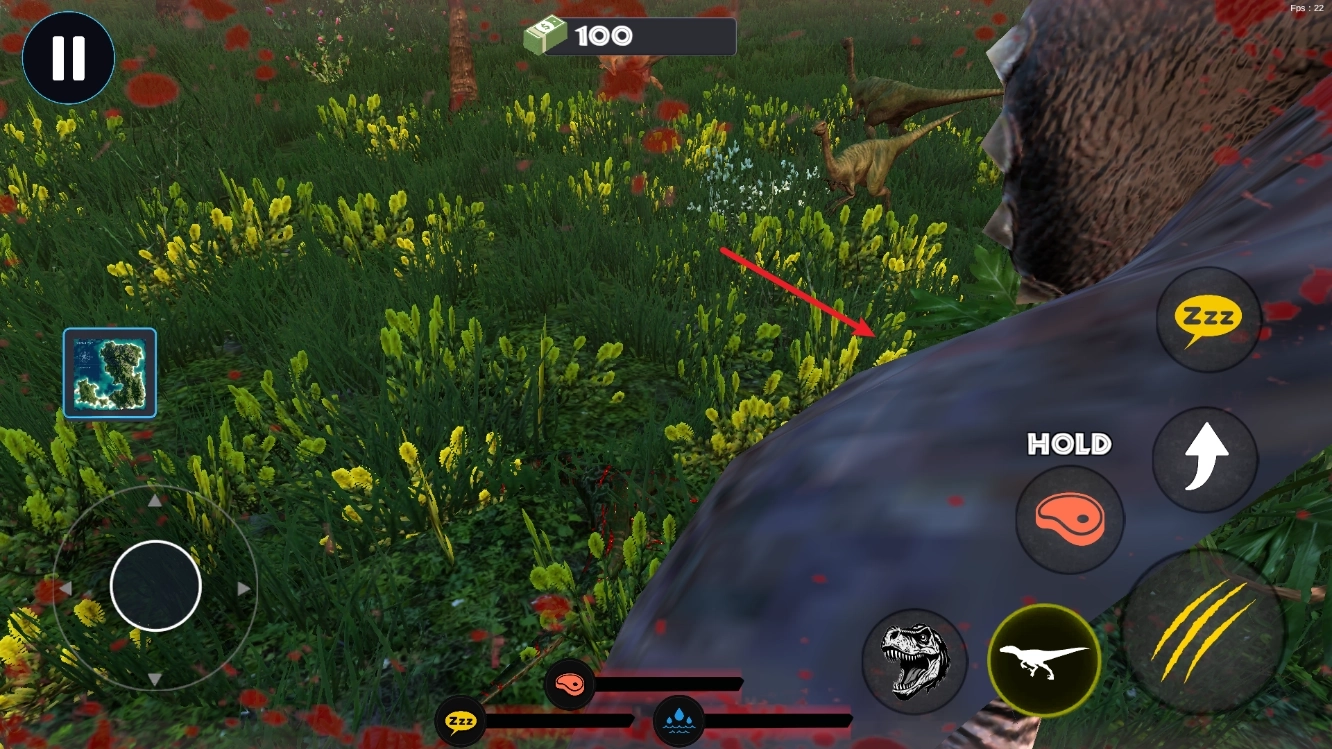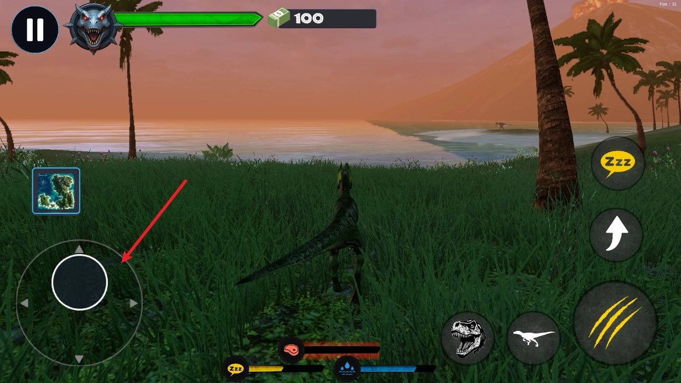 2、进入之后,我们通过左侧的摇杆来控制恐龙移动。