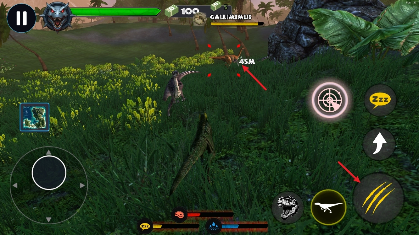 5、发现猎物后,靠近目标发起攻击,此时会出现用于锁定敌人的按钮。
